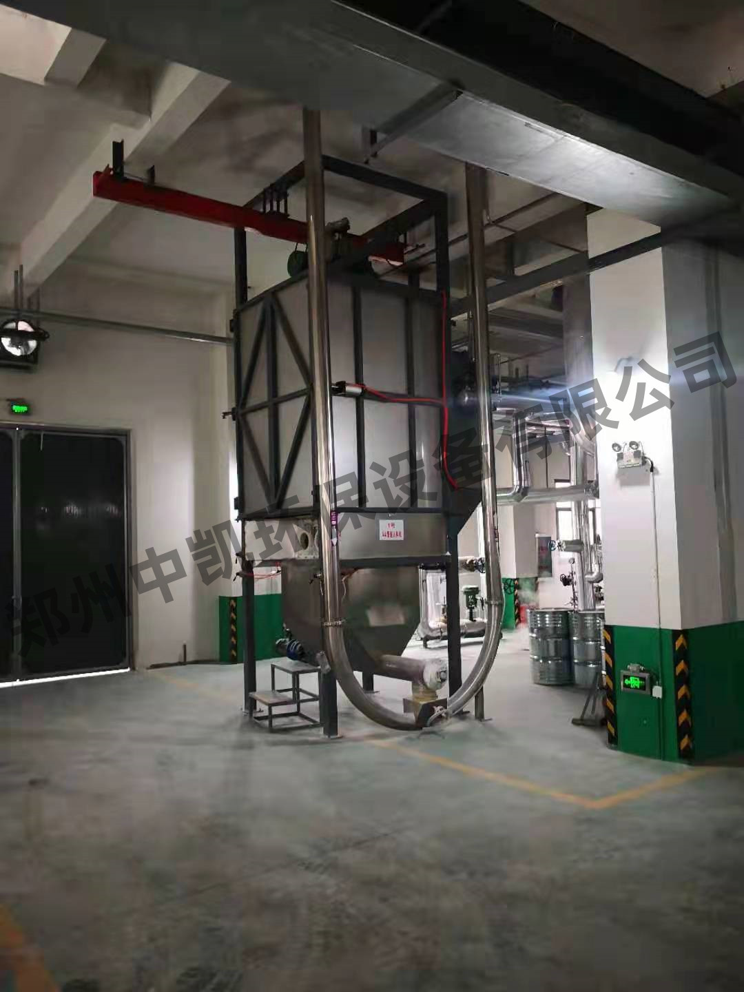 公司針對目前藥劑包裝的特點,與歐洲粉料投加專家開展技術合作,公司開發了適用於噸袋包裝藥劑投加支架,設備整體包含吊裝支架、叉車或者行車起吊點、防塵軟密封、帶視窗料倉、氣壓平衡濾網、收塵器、投加螺旋、法蘭接口等關鍵部件,大包裝噸袋自動拆包、卸料裝置,配有粉塵收集裝置。豐富了產品結構,解決了水廠的實際問題。使用此設備投加藥劑,確保工作環境整潔、勞動強度減輕、自動化程度提高、提高藥劑利用率、節省水廠運營費用。